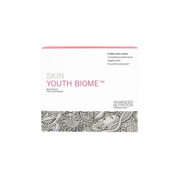 Featuring vitamin C and active cultures, Advanced Nutrition Programme Skin Youth Biome promotes intestinal health and a youthful complexion. A unique blend of scientifically-studied strains, the supplement supports the immune system, provides antioxidant protection to combat free radicals and boasts anti-ageing properties.